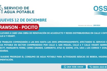 Obras Sanitarias informa que este jueves 12 de diciembre, llevará a cabo una obra de renovación de acueducto y redes…