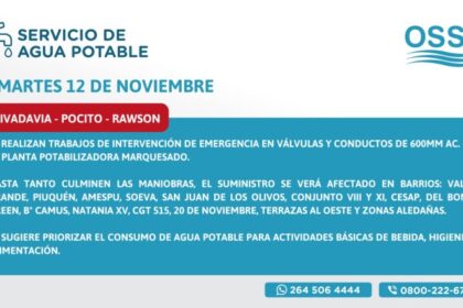 Obras Sanitarias informa que se encuentra realizando maniobras de intervención de emergencia en válvulas y conductos en la Planta Potabilizadora…