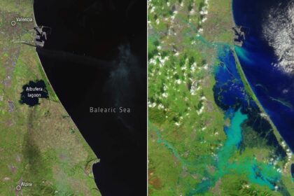 Ríos y ramblas desbordadas, municipios inundados... Destrucción. Las imágenes distribuidas por la Agencia Espacial Europea muestran el antes y el…