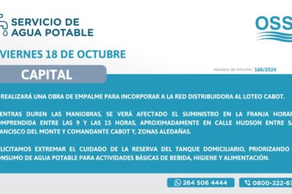 Obras Sanitarias informa que este viernes 18 de octubre, llevará a cabo una obra de empalme para incorporar a la…