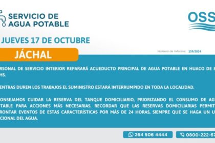 Obras Sanitarias informa que durante la jornada de este jueves 17 de octubre, personal de Servicio Interior realizará trabajos de…