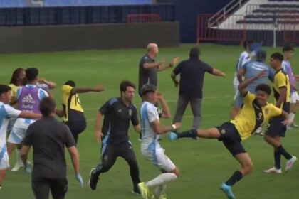 EscucharUn escándalo se vivió en un partido amistoso de la categoría Sub 15 que disputaron este domingo la selección argentina…