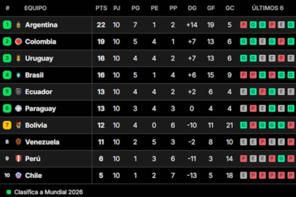 EscucharSe disputó este martes la décima fecha de las eliminatorias sudamericanas rumbo al Mundial Estados Unidos-México-Canadá 2026 y la selección…