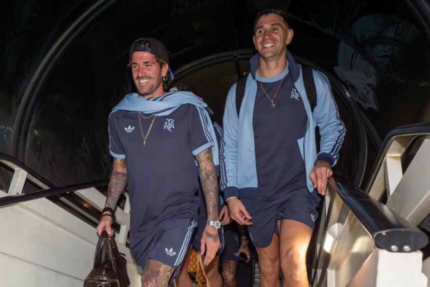 A falta de Messi, que quedó fuera de la convocatoria por una pequeña lesión en el aductor izquierdo, quien se robó las miradas en el ingreso del plantel al lugar de concentración fue Emiliano Martínez, el arquero que procurará volver a mantener en cero la valla, como en el 1-0 sobre Perú de noviembre de 2024 en el Monumental, el último compromiso del seleccionado nacional. Lo hizo también en 2021, en su único partido en Uruguay, cuando Argentina se impuso por el mismo resultado con un golazo de Ángel Di María.