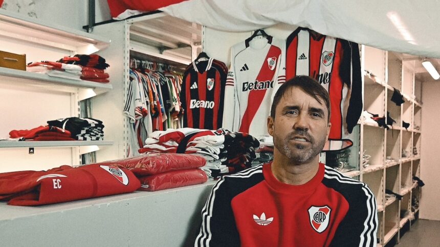 Eduardo Coudet en uno de sus primeros entrenamientos como DT de RiverPrensa River