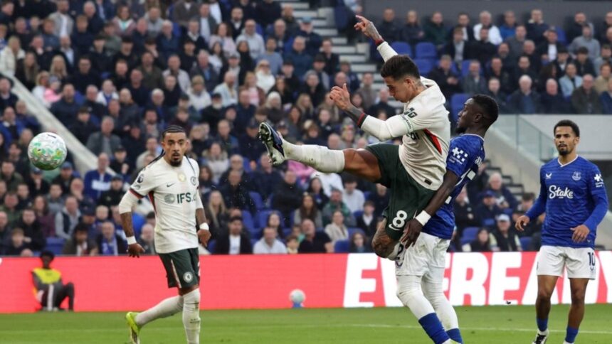 Beto, autor de dos goles de Everton, entre Caicedo y Robert SánchezJon Super – AP
