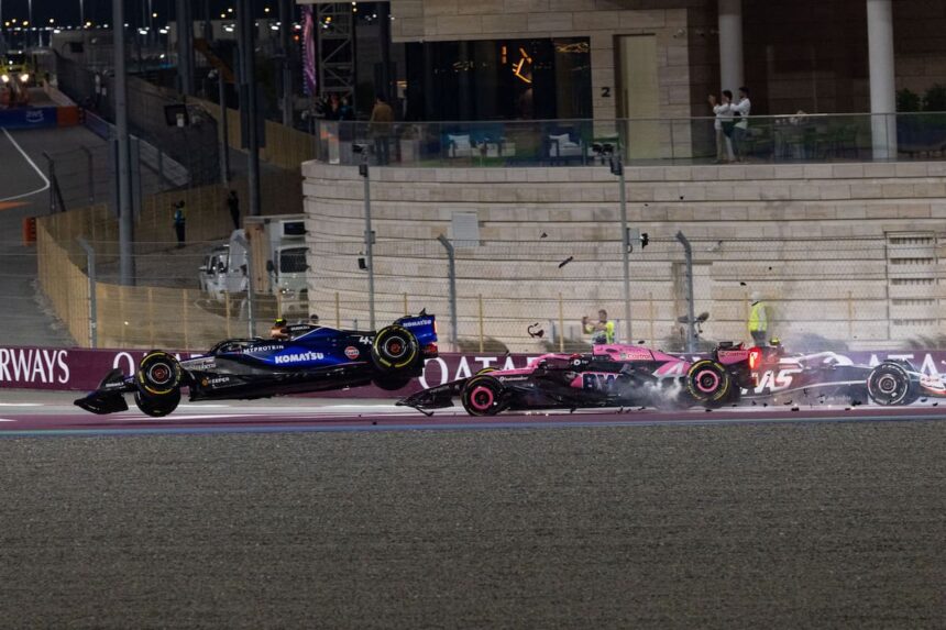 LOSAIL (Enviado especial).- Pocos metros duró la carrera de Franco Colapinto en Qatar. Había acelerado bien desde su 19ª posición en la grilla de partida y el francés de Alpine, Esteban Ocon, tratando de esquivar al Haas de Nico Hülkenberg, que estaba por iniciar un trompo, le pegó en el pontón derecho. Colapinto, incluso viendo lo que podía suceder, quiso evitar el incidente circulando por la parte lisa de escape. Pero fue inútil. Fuerte fue el impacto del Haas sobre su auto, que dio un salto. Su Williams y el Alpine quedaron encajados en la leca.