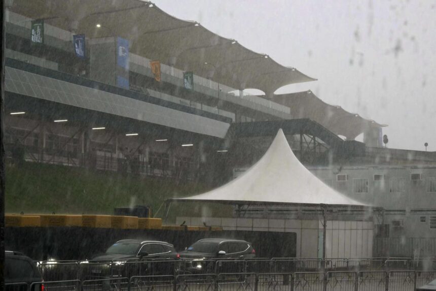 Las presunciones del servicio meteorológico se cumplieron y a las 14.15 comenzó a llover en forma copiosa en el autódromo paulista. Será un nuevo desafío para Franco Colapinto, que nunca condujo -hasta acá- un auto de Fórmula Uno bajo la lluvia. Incluso hay actividad eléctrica sobre el circuito, por lo que lo más probable es que la actividad se retrase más allá de las 15.