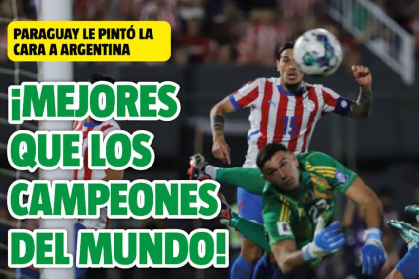 También se unifican en la conclusión. ABC Color titula que la campeona del mundo quedó “arrodillada” ante Paraguay tras complicarlo con un “partido conservador, con gente en propio campo”, igualando el trámite parcialmente con “una chilena para la historia” (la que se inventó Antonio Sanabria ocho minutos después del gol de Lautaro Martínez) y sacándole los tres puntos para sentir que “la vuelta al Mundial parece real, dejando de ser un sueño”.