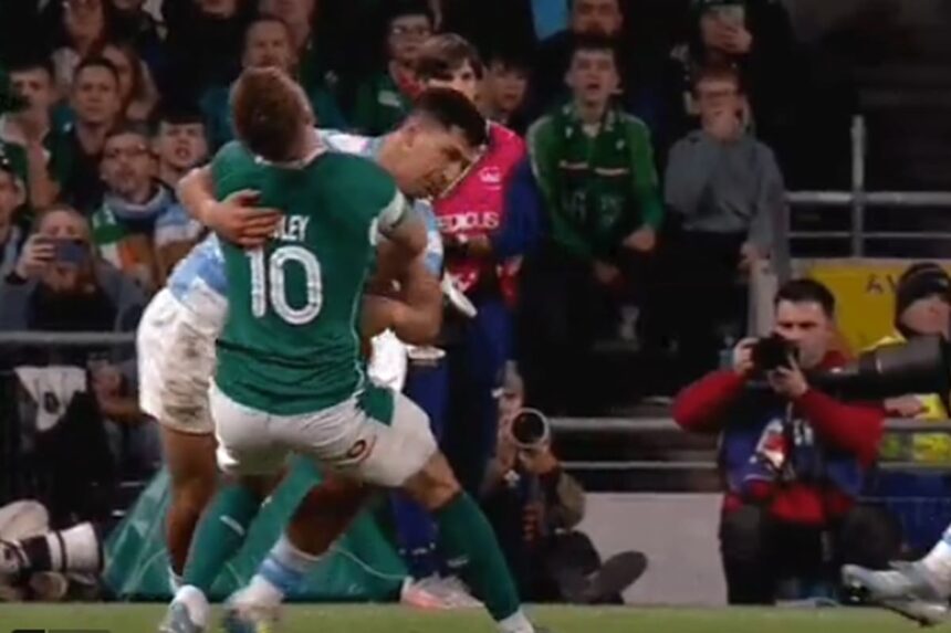 En el origen de la jugada, se detectó un impacto de Moroni en la cabeza del irlandés Jack Crowley durante un intento de tackle. Eso llevó a la anulación del try y a la amonestación al centro argentino surgido de CUBA, lo que dejó al equipo celeste y blanco con un hombre menos por al menos diez minutos, con posibilidad de que una revisión más detallada dictaminara una tarjeta roja. Pero la verificación de video confirmó la decisión inicial: Moroni volvería a la cancha.