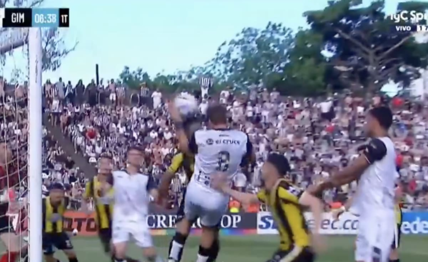 Las sucesivas repeticiones mostraron que la pelota dio en la mano de Matías Muñoz, en la antesala del gol de González. El toque es involuntario, pero efectivamente el balón le da en la mano luego de cabecear. Segundos más tarde, el cuarto árbitro les avisó a los integrantes del cuerpo técnico de Gimnasia la razón detrás de la invalidez del gol.