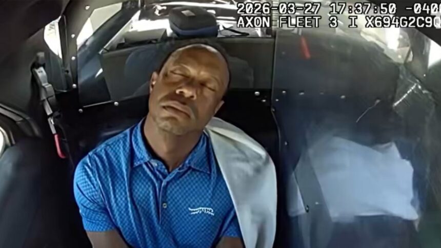 En el video, el ganador de 15 grandes y de 82 torneos del PGA Tour -marca con la que comparte el récord- aparece sometiéndose a una prueba de sobriedad y siendo esposado después de eso.