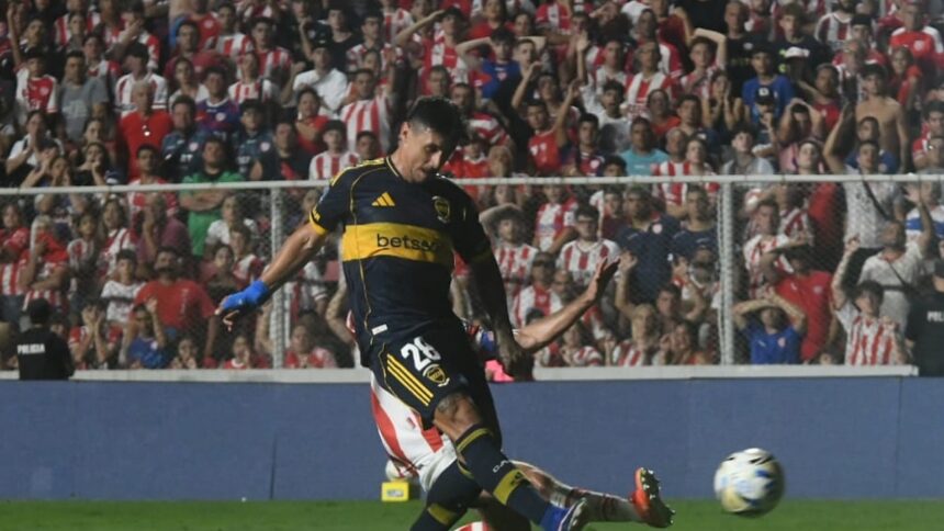 En ese arranque, en el que Boca manejaba el trámite sin generar peligro, lo más interesante apareció cuando Santiago Ascacibar intentó cambiar el ritmo y logró conectarse con los atacantes. De un pase filtrado del exEstudiantes se construyó la jugada más nítida de Boca: una definición de Merentiel que superó al arquero y fue despejada sobre la línea por Mateo Del Blanco. Boca era más ordenado que profundo, pero ese dominio volvió a durar poco: se sostuvo hasta que cayó el primer gol del rival.