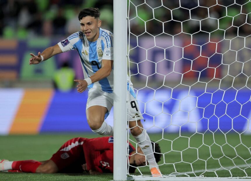 La ausencia de equivalencia, por la historia futbolística de las dos selecciones y por la jerarquía de las individualidades, se reflejó en apenas tres minutos de juego. La responsabilidad, el peso del partido, era de la Argentina, que en apenas unos movimientos marcó la diferencia: el dominio de la pelota se profundizó en una combinación que ensayaron Maher Carrizo y Santino Andino, y remató el delantero centro, Alejo Sarco. Un inicio ideal, porque los juveniles rompían el resultado con rapidez, descargaban la tensión que impone todo estreno, obligaba al rival a adelantarse…