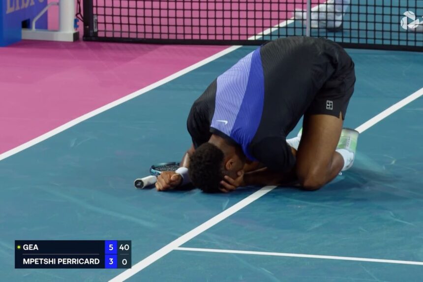 En el arranque de la sesión nocturna en el court central Patrice Dominguez, se enfrentaban los franceses Arthur Gea, 168° del ranking mundial, y Giovanni Mpetshi Perricard (57°). Gea había conseguido un quiebre y estaba 5-3 y 30-0 en el primer set cuando se produjo un accidente. Mpetshi Perricard subió a la red a buscar una volea, pero el impacto no fue bueno y la pelota impactó en su ojo izquierdo.