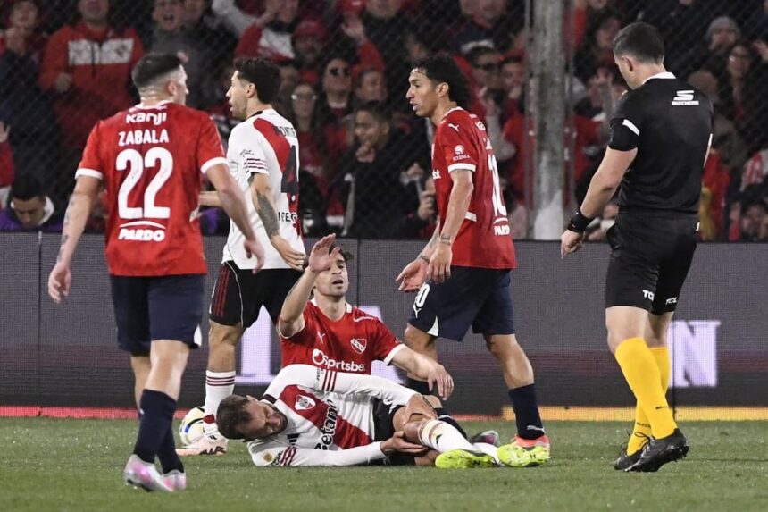 Germán Pezzella debió abandonar el campo de juego, en el encuentro en el que River e Independiente no se sacaron ventaja, por la cuarta fecha del Torneo Clausura. La escena, marcada por su llanto y una evidente dificultad para caminar, encendió preocupación en el banco de los suplentes, que inmediatamente fueron a consolar al defensor.