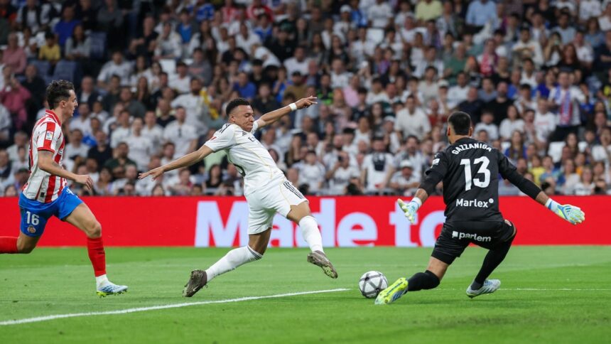 En el Bernabéu, Gazzaniga, que jugó como titular, al igual que su compatriota Claudio Echeverri, había construido una actuación sólida. El arquero de Girona respondió bien en varias intervenciones y sostuvo el empate en cero durante el primer tiempo, en una jornada especial retro de LaLiga, por detalles estéticos de otra época tanto en la transmisión como en la indumentaria arbitral. Real Madrid, dominante en el desarrollo, apenas había sido exigido con una intervención de Andriy Lunin, titular por una lesión de Thibaut Courtois, y un intento desviado del Diablito, que no logró gravitar.