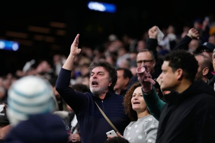 El choque comenzó con una sonora silbatina dedicada principalmente al brasileño Vinícius y al inglés Jude Bellingham cada vez que tocaban la pelota. También fueron silbados otros jugadores, como el uruguayo Fede Valverde y Dean Huijsen.