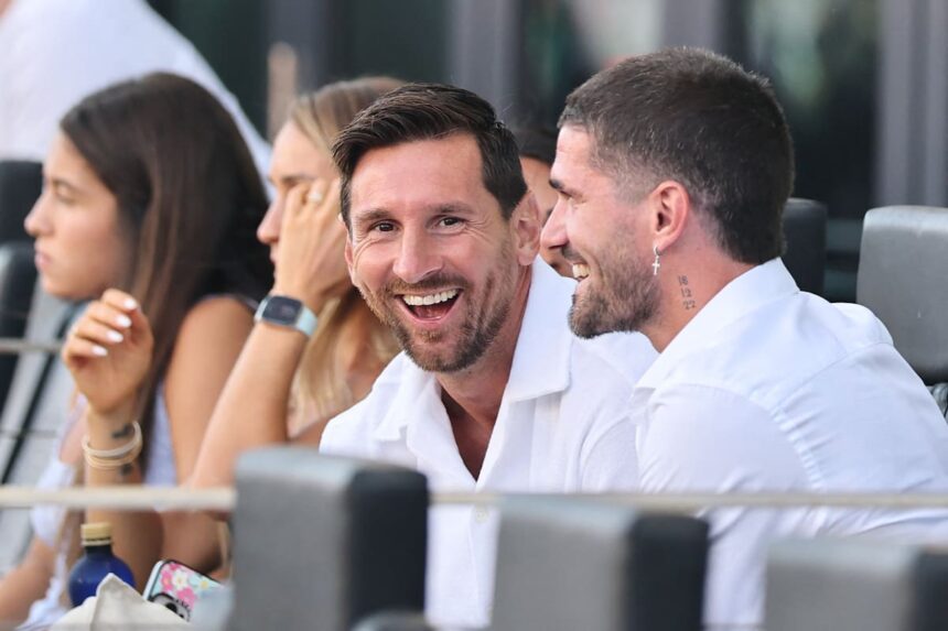 El volante ingresó en el Chase Stadium de Miami, antes del empate 0-0 frente a Cincinnati por la MLS. En una de las cabeceras se desplegó la bandera “bienvenido Rodri”. Desde la platea lo seguía su nuevo compañero y amigo, Lionel Messi, suspendido por un partido por la MLS por su ausencia sin causa justificada al Juego de las Estrellas. Tras la recepción en el campo, De Paul se sentó juntó a Messi a tomar mate.