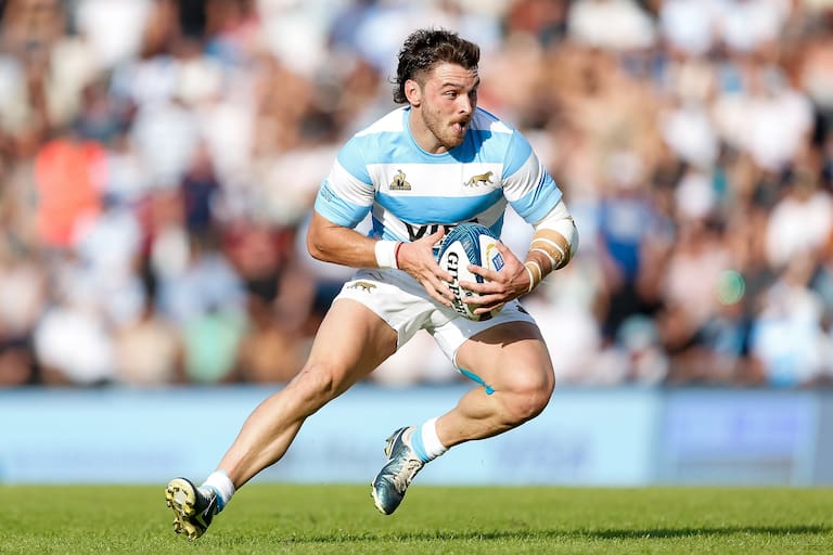 En el primer ataque consistente de los argentinos, una sucesión de pases culmina con uno de Santiago Chocobares a Mateo Carreras, y el rápido wing tucumano escapa hacia el in-goal y termina apoyando entre los palos. El local se despierta y queda 10 tantos abajo, 7-17.