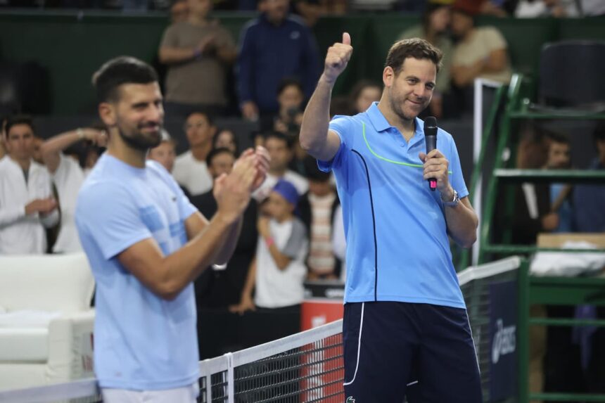 Por una tarde, el estadio del Parque Roca volvió a vivir una fiesta del tenis. Lejos (o no tanto) de aquellos días de Copa Davis, el Mary Terán de Weiss se vistió de gala para una ocasión especial: celebrar la carrera de Juan Martín del Potro, 33 meses después de su último partido oficial, y recibir a una leyenda aún vigente como Novak Djokovic. Entonces, desde temprano, el predio de Villa Soldati recibió a miles de espectadores, los entusiastas del tenis, los fanáticos ávidos por despedir a uno de los mejores jugadores de la historia argentina y disfrutar la magia del campeón de 24 Grand Slams; rivales algún tiempo atrás, amigos desde siempre. Y fue una jornada inolvidable, con alegría, risas, y una inevitable pizca de nostalgia.