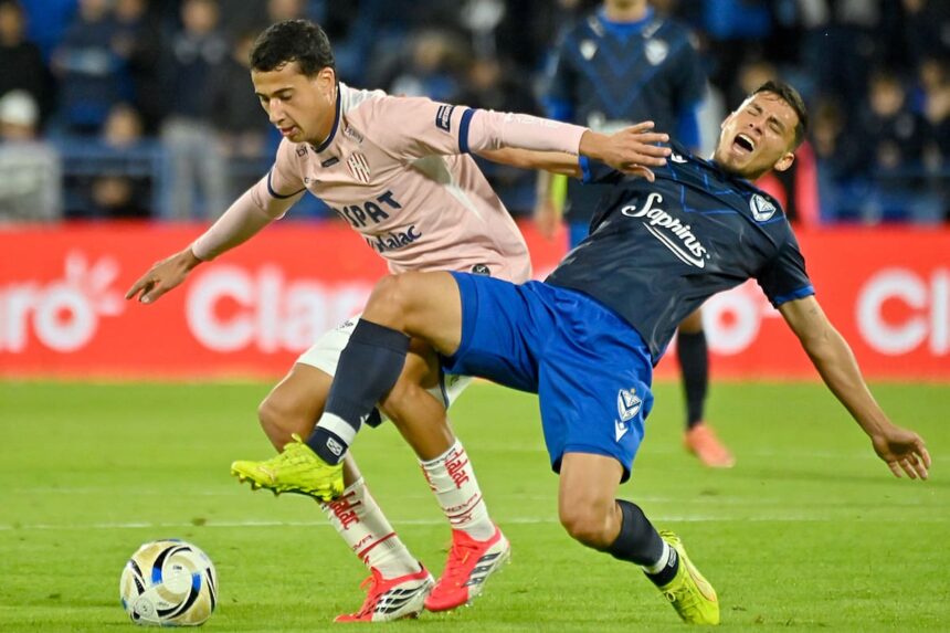 Dos jugadas con elaboración, ejecutadas de modos simples pero con efectividad: Florián Monzón, con un tacazo, selló la asistencia del chileno Diego Valdés y colocó en ventaja a Vélez; la respuesta fue un movimiento clásico, que pasan los años y no pierde vigencia: Nicolás Palavecino, que tomó la vacante de Marcelo Estigarribia -cumplió la sanción por acumulación de cinco tarjetas amarillas-, ubicó con un pase rasante y hacia atrás -con beneficio para el que ataca- a Julián Palacios, que de frente marcó la igualdad.