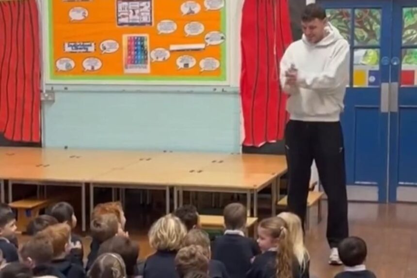 Uno de los héroes de un histórico triunfo en el fútbol inglés fue a dar clases y los chicos lo sorprendieron