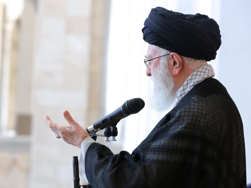 El líder supremo iraní, el ayatollah Ali Jamenei, en una rara aparición, pronunció este viernes un sermón en la mezquita Imam Jomeini Mosalla, de Teherán, en la que elogió el ataque de Irán contra Israel el martes y lo calificó de completamente “legal”.