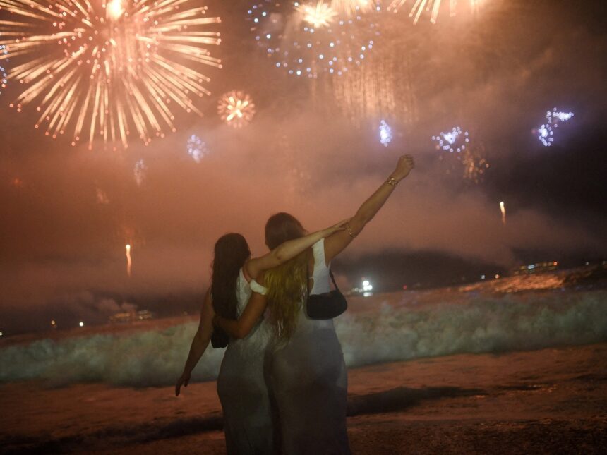 El espectáculo de fuegos de artificio del ‘Réveillon’ de este miércoles tuvo una duración de doce minutos y una mayor amplitud espacial debido a que la alcaldía utilizó en esta ocasión 19 balsas ancladas frente a la playa de Copacabana como base de lanzamiento de los cohetes, el doble de embarcaciones usadas en la despedida de 2024.