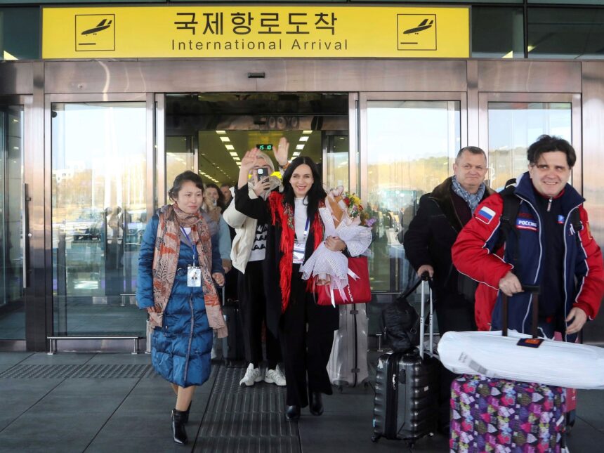 Turistas rusos, en el aeropuerto de Pyongyang, a comienzos de febrero. Foto: AP  Turistas rusos, en el aeropuerto de Pyongyang, a comienzos de febrero. Foto: AP