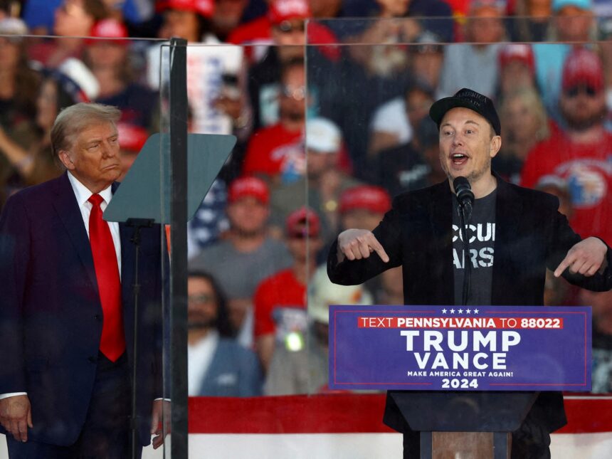 En los mítines del expresidente, Musk ha aparecido ocasionalmente en el escenario para hacer una apasionada petición de votos. También ha donado casi 75 millones de dólares en apoyo de Trump durante tres meses.