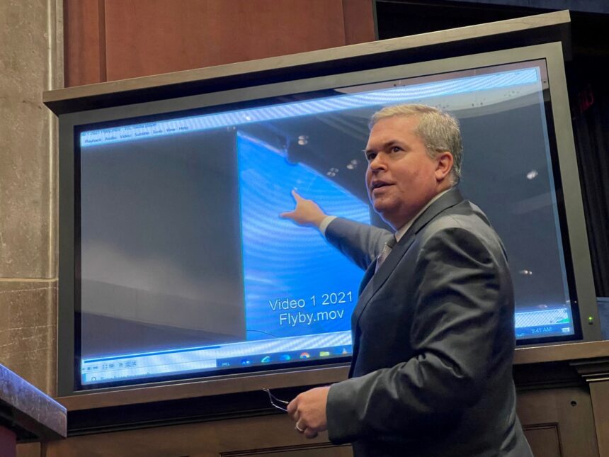 El comandante retirado de la Marina David Fravor testifica durante una audiencia del Comité de Supervisión de la Cámara de Representantes titulada «Fenómenos anómalos no identificados: implicaciones para la seguridad nacional, la seguridad pública y la transparencia gubernamental» en el Capitolio, el 26 de julio de 2023, en Washington, DC.   Drew Angerer/Getty Images/AFP (Foto de Drew Angerer /  vía AFP)El comandante retirado de la Marina David Fravor testifica durante una audiencia del Comité de Supervisión de la Cámara de Representantes titulada «Fenómenos anómalos no identificados: implicaciones para la seguridad nacional, la seguridad pública y la transparencia gubernamental» en el Capitolio, el 26 de julio de 2023, en Washington, DC. Drew Angerer/Getty Images/AFP (Foto de Drew Angerer / vía AFP)