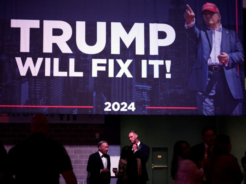 Los partidarios de Trump observan los resultados mientras asisten a una fiesta antes de que el candidato presidencial republicano, el expresidente Donald Trump, llegue para hablar en el Centro de Convenciones del Condado de Palm Beach. Foto APLos partidarios de Trump observan los resultados mientras asisten a una fiesta antes de que el candidato presidencial republicano, el expresidente Donald Trump, llegue para hablar en el Centro de Convenciones del Condado de Palm Beach. Foto AP