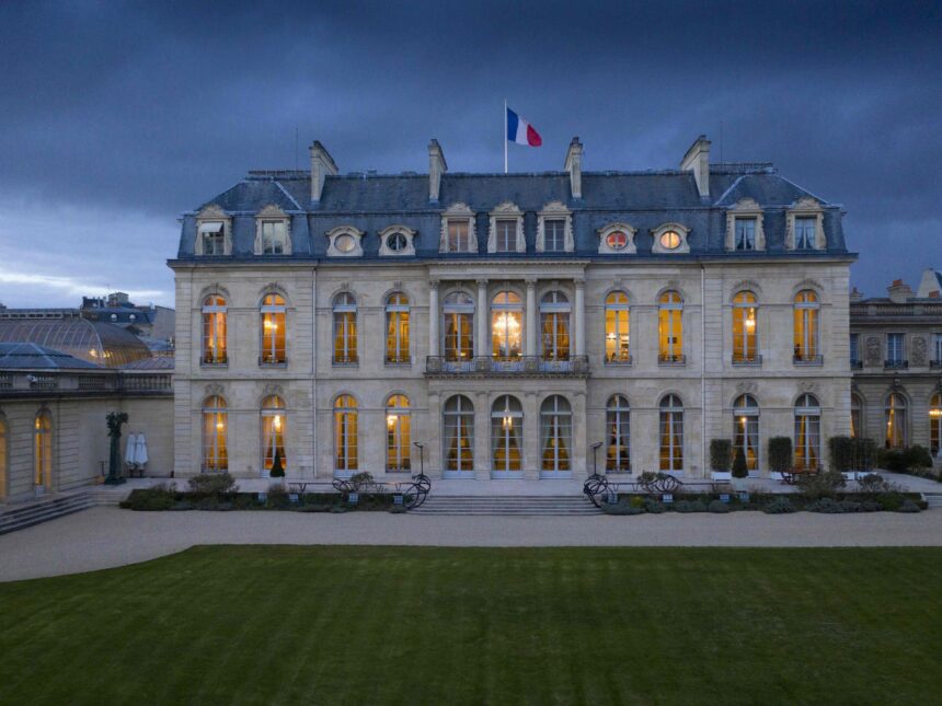 Una vista aérea tomada en el Palacio del Elíseo en París desde el lado del jardín muestra la oficina del presidente francés al anochecer. Foto AFPLas penas impuestas son algo más bajas que las que había pedido la Fiscalía.