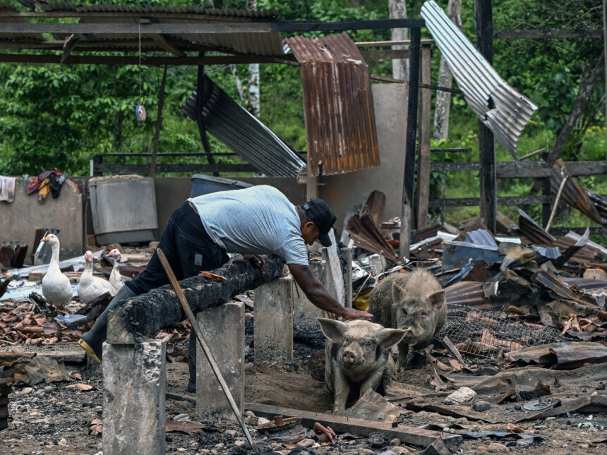 «íBum!», escuchó José Peña. Un bombardeo ordenado por el presidente de Ecuador como parte de la guerra antinarco respaldada por Estados Unidos redujo a escombros la parcela de este campesino que asegura que aquí solo había una finca ganadera.