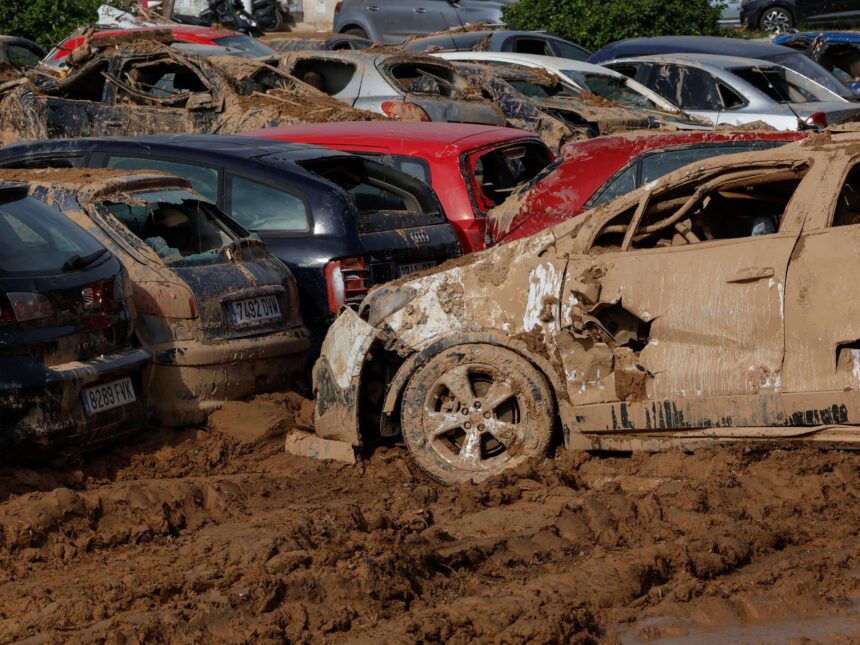 Coches apilados por la riada en las calles de Catarroja, Valencia. Foto: EFE“Debe ponerse el foco en el agua potable. En restablecer las redes rotas de alcantarillado y de drenajes de aguas negras. Y en monitorear la calidad del agua que se va suministrando a la población afectada para que no esté contaminada fecalmente”, enumera el epidemiólogo.