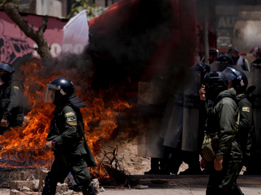 La policía lanzó gases lacrimógenos contra los manifestantes, que respondieron con dinamita en las rutas de Bolivia. Foto: AP La policía lanzó gases lacrimógenos contra los manifestantes, que respondieron con dinamita en las rutas de Bolivia. Foto: AP