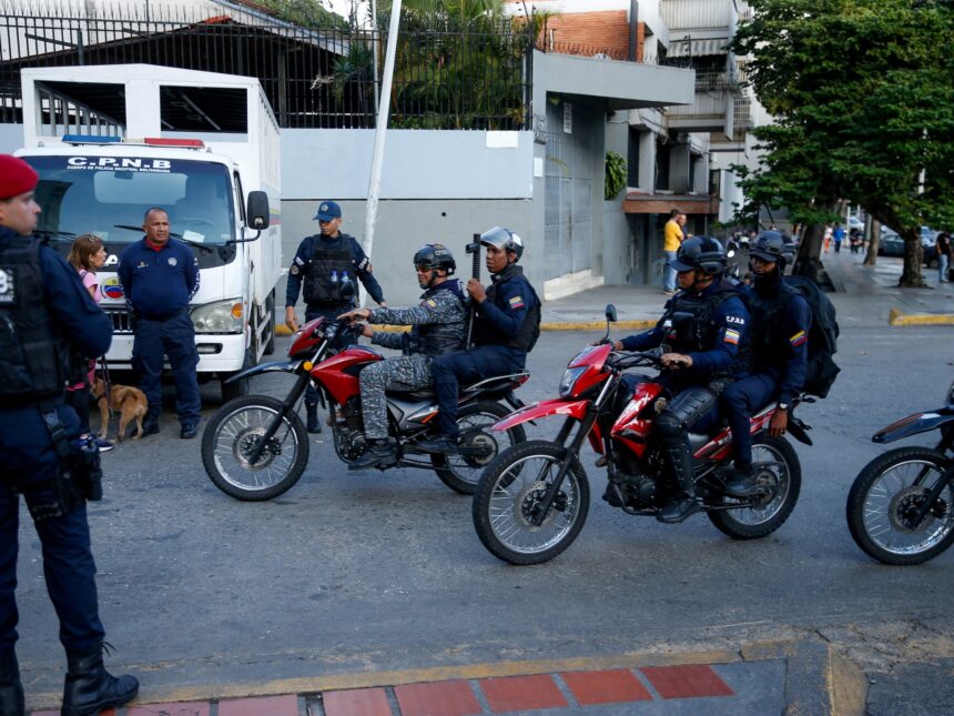 Un vehículo de la policía chavista, cerca del centro de detención Helicoide, en la capital de Venezuela. Foto: REUTERS Un vehículo de la policía chavista, cerca del centro de detención Helicoide, en la capital de Venezuela. Foto: REUTERS