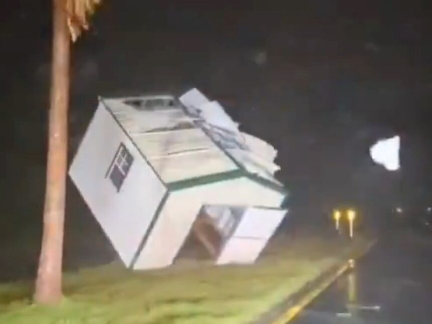 Uno de los primeros videos que se viralizó fue el de un hombre, en las afueras de una vivienda, que se mostraba sorprendido por lo que tenía delante de sus ojos: una tormenta, acompañada de un potente viento, que doblegaba las palmeras y los restos de escombros que flotaban entre las aguas.