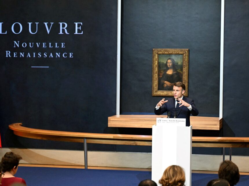 «El museo más grande del mundo vive un final de ciclo (…) Se necesitan cambios fundamentales e inversiones a largo plazo para un nuevo renacimiento del Louvre», aseguró Macron, con la obra maestra de Leonardo da Vinci de fondo.