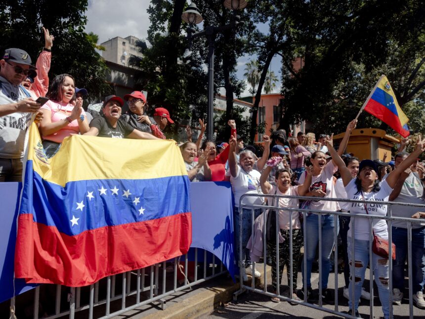 El martes, funcionarios del gobierno encabezaron una gran multitud de venezolanos en Caracas, la capital, marchando para exigir la liberación de Nicolás Maduro, el presidente derrocado del país.