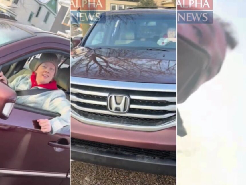 Otra mujer, también grabando la escena con su teléfono, discute más fuerte con Ross. Mientras ella le sigue hablando, se ve a lo lejos otra camioneta de ICE y a otros agentes bajar de ella. Uno se acerca a la puerta de la conductora. Se escucha el grito de «Salgan del auto».