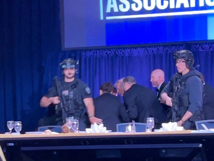 “El tirador saltó el detector de metales de la puerta principal… y disparó a un miembro del Servicio Secreto en el salón de baile”, dijo un periodista que asistía al evento. Pero no había información oficial.