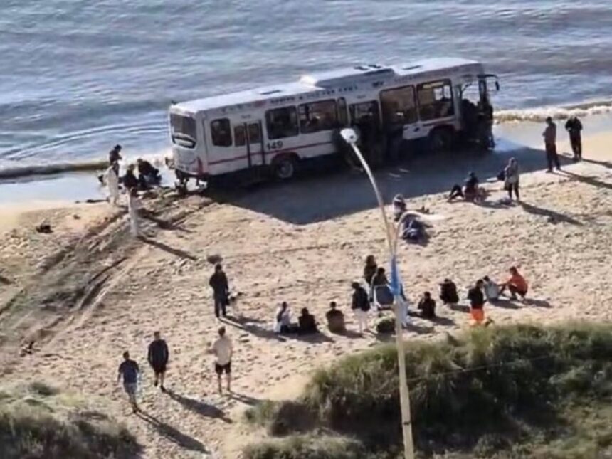 Un colectivo del servicio urbano de transporte de Montevideo terminó deteniéndose a escasos centímetros de las aguas del Río de la Plata, luego de que por causas que aún se investigan cruzó a toda velocidad la rambla a la altura de Pocitos y solo la arena pudo detener su marcha.