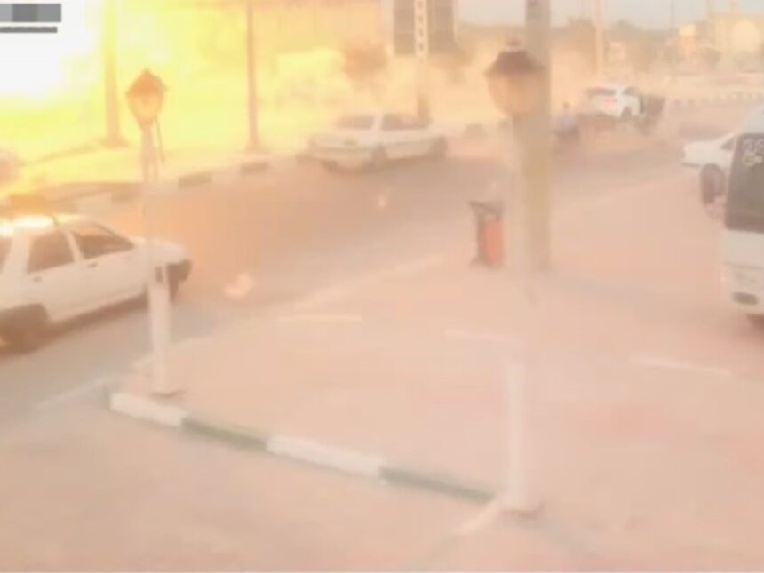 Una imagen del vídeo muestra cómo el misil estalla sobre una zona residencial cercana a las instalaciones deportivas y a la escuela. Foto Agencia de Noticias FarsLos videos que captaron un ataque, en una zona residencial a unos 275 metros del polideportivo y la escuela, muestran el arma en vuelo, con una silueta distintiva que coincide con la del misil PrSM.