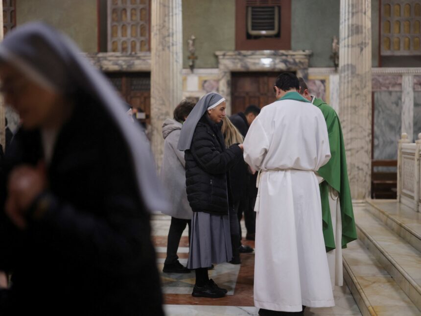 La comunidad argentina de Roma, más unos cuantos compatriotas que llegaron de otros lugares de Italia, celebró con renovadas esperanzas una misa en la Iglesia Nacional de Argentina, fundada en 1930, tras la seguidilla de noticias que se esparcieron de un papa Francisco que pasó una jornada dedicándose a demostrar que sigue firme al comando de la Iglesia y que mostró la jornada más optimista desde su internación en el policlínico Gemelli hace doce días.