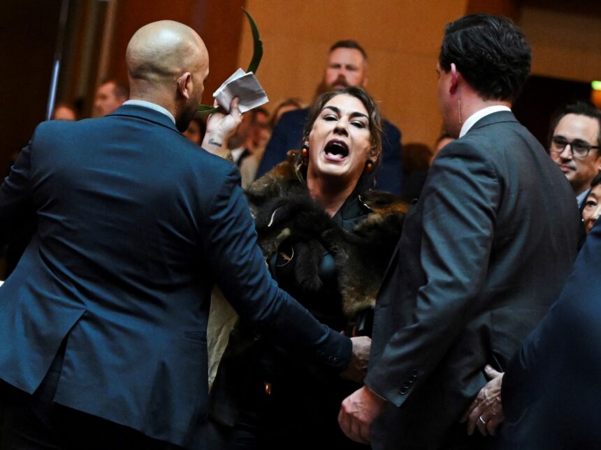 El reclamo fue realizado por la legisladora Lidia Thorpe, quien terminó siendo escoltada fuera de la recepción parlamentaria a la pareja real tras exclamar que los colonizadores británicos se quedaron tierras y huesos de indígenas.
