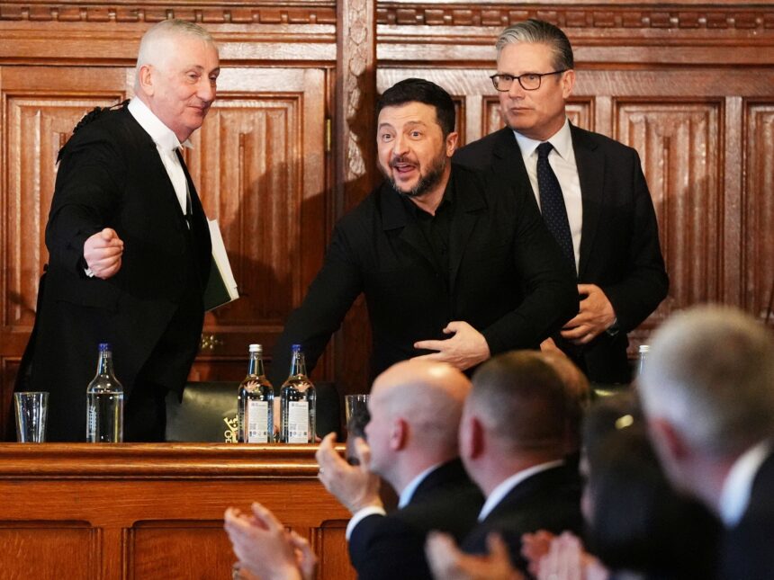 El presidente ucraniano, Volodimir Zelenski, visitó Londres el martes, se entrevistó con…
