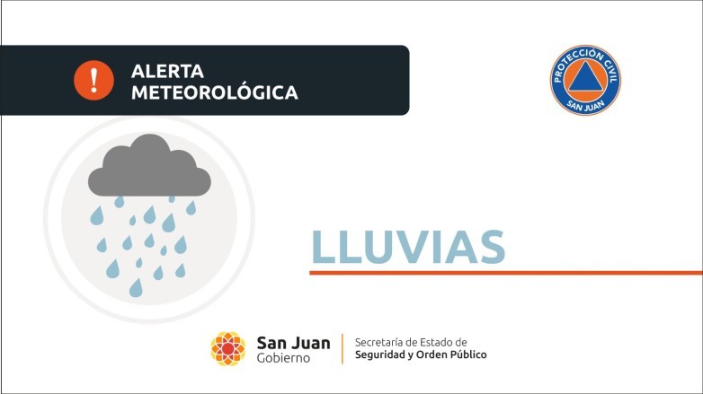 En el sector Este de San Juan, se pronostica Alerta Naranja, el área será afectada por lluvias persistentes de variada intensidad, por momentos fuertes. Se estiman valores de precipitación acumulada durante todo el periodo de alerta de entre 50 y 60 mm, pudiendo ser superados de manera puntual