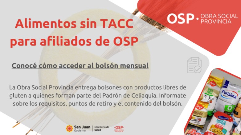 La Dirección de Obra Social Provincia autoriza y entrega mensualmente un bolsón de alimentos libres de gluten a aquellos afiliados que se encuentran empadronados en el Padrón de Celiaquía.